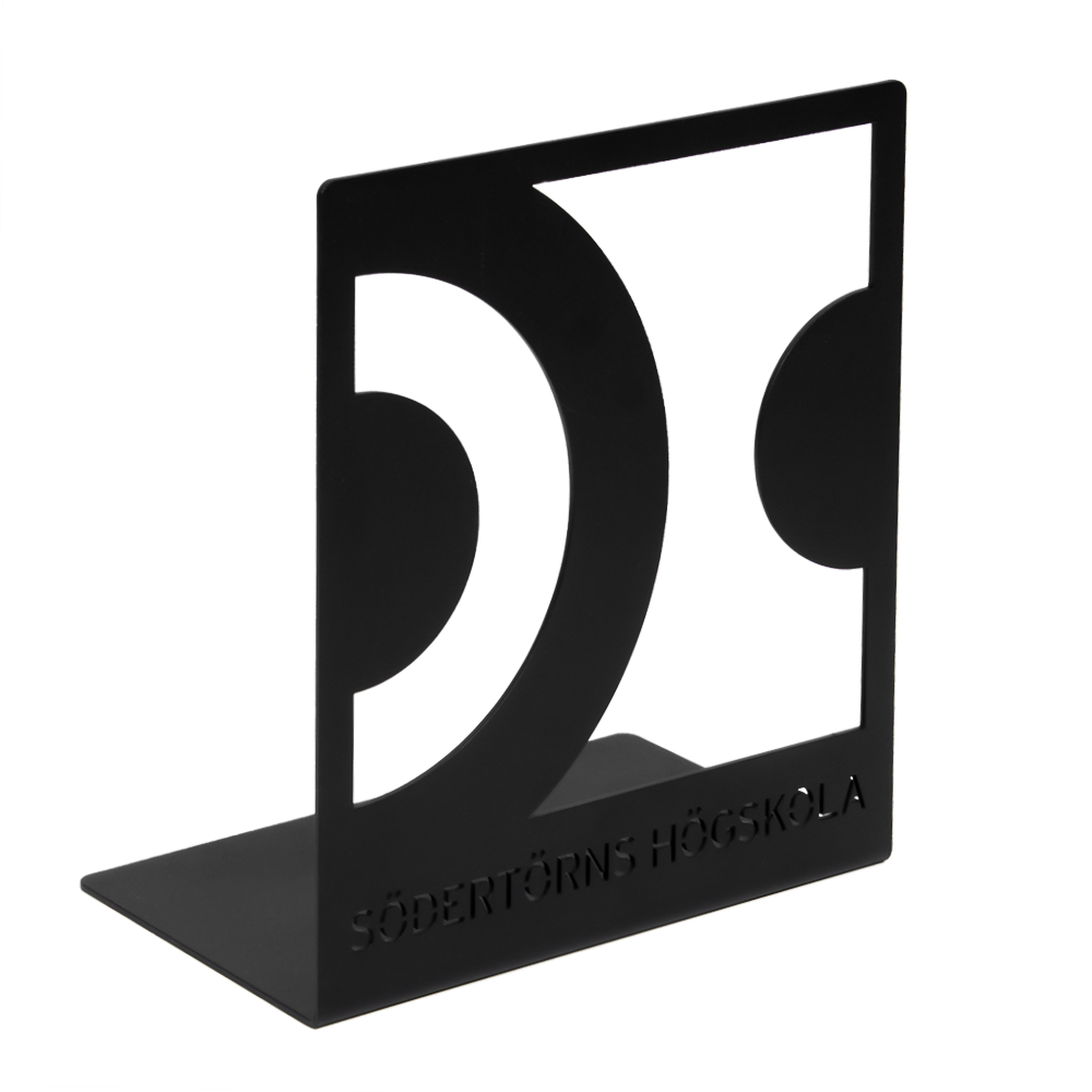 Svensktillverkat bokstöd i 1,5 mm svenskt stål. Motivet skärs ut i bokstödet vilket ger en stor frihet i utformningen. Bokstödet pulverlackas svart som standard.